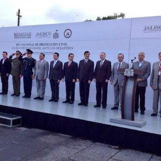 Arturo Zamora Jiménez, durante la conmemoración del Día Nacional de Protección Civil que se realizó en la Plaza Liberación del Centro Histórico de Guadalajara.