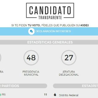 Lo anterior se desprende de la estadística de la plataforma Candidato transparente #3de3, una iniciativa de Transparencia Mexicana y el Instituto Mexicano para la Competitividad, que busca conocer el estatus de cada candidato, para saber con cuántos recursos económicos llegan al puesto y con cuánto saldrá una vez que concluya la gestión pública. Esto permitiría que los ciudadanos comprendieran o vislumbraran presuntos actos de corrupción.
