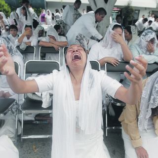 GUADALAJARA, JALISCO (15/AGO/2012).- La fiesta de la Santa Convocación cumplió una edición más por parte de los miembros de la Iglesia de la Luz del Mundo. Su jerarca máximo, Samuel Joaquín Flores, presidió el rito de la Santa Cena ante una multitud de fieles de 43 países.