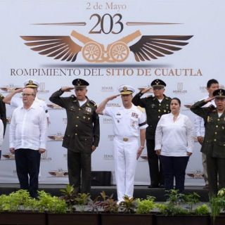 Durante el Izamiento de Bandera con motivo de los CCIII años del Rompimiento del Sitio de Cuautla, en donde también estuvieron el secretario de Marina, Almirante Vidal Francisco Soberón Sanz, el mandatario morelense, reconoció que hoy como ayer, "tenemos nuevos desafíos, pero hoy como ayer, tenemos a estas dos instituciones que han mostrado lealtad, honor, valor, solidaridad y patriotismo".