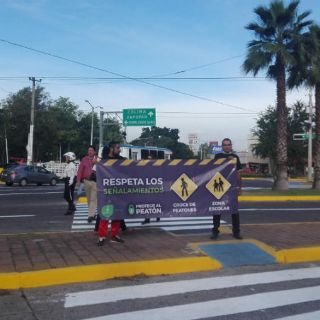 Con mantas y folletos con recomendaciones, personal de la Semov e integrantes de diferentes colectivos como Víctimas de la violencia vial, Las otras caras de la ciudad y la FEU, acudieron a algunos de los principales cruces de la Zona Metropolitana de Guadalajara, para recordar a los automovilistas que los peatones se encuentran en el primer lugar de la pirámide de prioridad y de la ley.