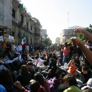 GUADALAJARA, JALISCO (02/DIC/2010).- Dirigentes, profesores y estudiantes de la Universidad de Guadalajara (UdeG) “tomaron” simultáneamente Palacio de Gobierno y Casa Jalisco, en acciones que marcan el reinicio en las protestas para exigir al Gobierno estatal la entrega de recursos (701 millones de pesos) que éste adeuda a la institución.