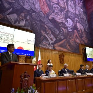 Luego del acto protocolario, el embajador de Japón en México, Akira Yamada, dictó la conferencia "Relaciones México-Japón", durante la cual afirmó que ambas naciones son socios estratégicos globales con una reciente conexión en ámbitos políticos y económicos principalmente.