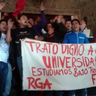 Durante la protesta alumnos gritaron consignas en contra del mandatario estatal, Emilio González, exigiendo que entregue los 701 millones de pesos que adeuda a la Universidad, de compromisos firmados con la Federación.