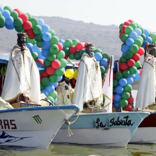 Los miles de fieles acompañan a los Reyes hasta la Laguna, donde cada uno tiene lista su lancha para pasear por el cuerpo de agua que conserva un color verdoso y deja flotar basura estancada en las orillas; pero no es motivo para callar la música y el festejo. Las bandas se suben a otra lancha y sin parar de tocar persiguen el paseo de los Santos.