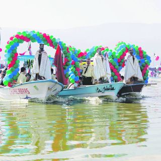 Melchor, Gaspar y Baltazar recorrieron las verdosas aguas de Cajititlán y la gente igual les aplaudió, caminó a su lado y se arrodilló frente a ellos.
