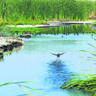 A lo largo del canal en El Muey se ven parlotear patos color oscuro que, si bien se pierden entre el agua con la misma tonalidad, han hecho vida en la misma corriente por la que murió Miguel Ángel.