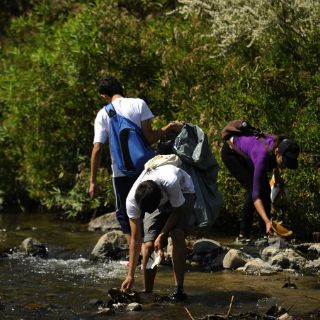 Lupita Ramos va adelante. La joven de 16 años decidió mojar su pantalón de mezclilla para caminar al extremo opuesto del cauce y ayudar a mejorar su aspecto. "¡Guácala!", dice: encontró excremento. Pero sortea la sorpresa y continúa su labor sin más exabruptos. Metros atrás halló una bolsa de cartón repleta de pañales sucios y vasos desechables.