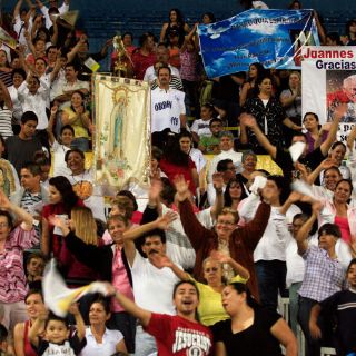 GUADALAJARA, JALISCO (30/ABR/2011).- Algunos vestidos de blanco, otros con estampas del Papa en sus playeras ingresan todavía al Estadio Jalisco, donde se llevará a cabo una velada de oración por la paz y fieles observarán vía satélite la beatificación del Papa Juan Pablo II transmitida desde Roma.