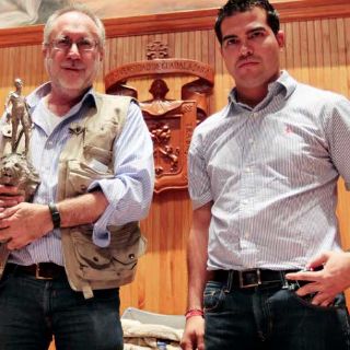 La presea la recibió en manos del presidente de la Federación de Estudiantes Universitarios (FEU), Marco Antonio Núñez Becerra, y del vicerrector ejecutivo de la casa de estudios, Miguel Ángel Navarro Navarro.