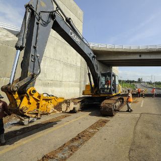 GUADALAJARA, JALISCO (10/AGO/2013).- La Secretaría de Infraestructura y Obra Pública repara un tramo de la carpeta asfáltica en el kilómetro 17 del nuevo trazo del