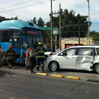 Cuatro mujeres, el chofer del macrobús y un bebé de siete meses de edad, fueron trasladados por la Cruz Verde a la Unidad Ernesto Arias.