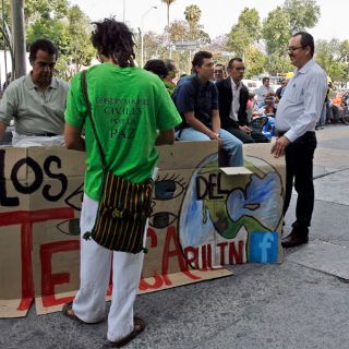 Entretanto, una manifestación conformada por cerca de 150 miembros de diversos grupos antagónicos al macro proyecto, que prevé inundar tres poblados milenarios en la localidad alteña, reparte pancartas con leyendas en contra de El Zapotillo, y a través de un altavoz informan a los ciudadanos que pasan por la zona sobre los “daños ecológicos irremediables” que causará al entrar en funcionamiento.