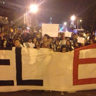 contingente conformado en su mayoría por jóvenes, comenzó a trasladarse sobre la avenida Enrique Díaz de León a la altura del templo Expiatorio para exigir justicia por el caso de los 43 normalistas desaparecidos en Ayotzinapa desde el pasado 26 de noviembre.