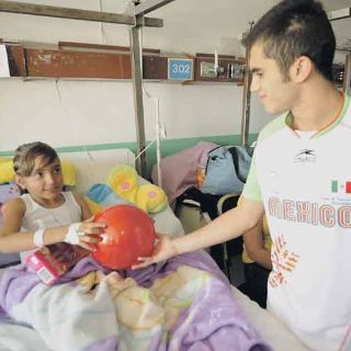GUADALAJARA, JALISCO (11/DIC/2011).- Los clavadistas jaliscienses que obtuvieron medalla en los pasados Juegos Panamericanos, Iván García, Germán Sánchez y Julián Sánchez, estuvieron ayer en las instalaciones del Hospital Civil “Fray Antonio Alcalde” para ayudar a los pacientes y familiares más necesitados.