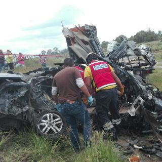 Personal de rescate y de la Fuerza Única Regional se dirigió poco antes de las dos de la tarde al kilómetro 101+800 de la carretera federal 80, que conduce de Ojuelos a Lagos de Moreno. Se había reportado un choque entre un auto y un camión.