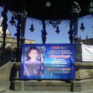 GUADALAJARA, JALISCO (13/FEB/2013).- Una pequeña marcha fue convocada la mañana de este miércoles en demanda de justicia en el caso del niño Miguel Ángel López Rocha, el pequeño que en 2008 murió a causa de haber estado en contacto con el agua contaminada del río Santiago.