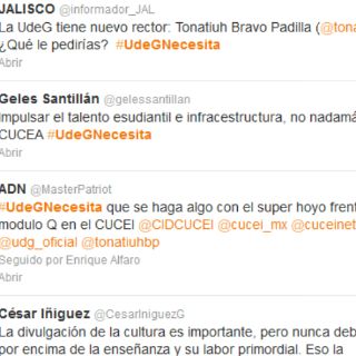 A través del hashtag #UdeGNecesita los usuarios de redes sociales enlistan sus demandas hacia el nuevo dirigente de la casa de estudios de Jalisco