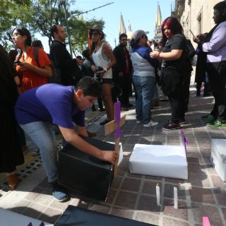 "¡Ni una más!, ¡Ni una más! ¡Ni una asesinada más!", fue el grito unánime que los asistentes repitieron en múltiples ocasiones, mientras acarreaban pequeños ataúdes, que dejaron frente al recinto para representar a las mujeres víctimas de feminicidio.