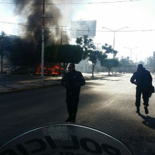 Unidades que se desplazaron al punto encontraron una pipa de gas incendiada. El fuego había afectado a ocho vehículos más.