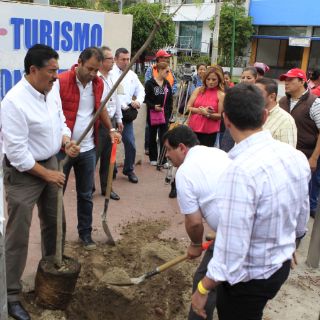 A la reforestación asistió el alcalde de Guadalajara, Ramiro Hernández García, quien recorrió la vialidad para supervisar la obra de pavimentación y rehabilitación de banquetas.