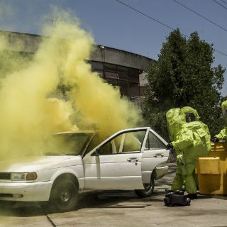 El hombre ataviado con máscara antigás y con un traje resistente a las explosiones se aproxima sigiloso al automóvil con el conductor inconsciente y con un compañero policía tirado al lado. Cuenta con equipo que puede detectar la amenaza; rodea el vehículo e identifica el problema: se trata de gas cloro, el cual al contacto con las mucosas nasales produce ácido clorhídrico capaz de matar a la persona que lo aspire.