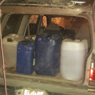 La camioneta asegurada transportaba a su vez cuatro bidones de 60 litros cada uno con gasolina y hallaron además en el interior 20 cartuchos calibre 9 milímetros.