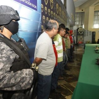 En la base central de la SSPE, fueron presentados los 11 hombres y dos mujeres, que conformaban el grupo; uno de ellos aceptó que trabajaban para dicha organización delictiva.