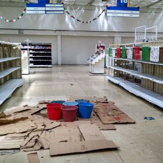 El Super ISSSTE de la calle Javier Mina, en la Colonia San Andrés, es el único que sobrevivió. En todo Jalisco, sólo permanecerá abierta ésta tienda y una segunda ubicada en Tlaquepaque. Pero a pesar de la oportunidad, la tienda también se encuentra vacía. En el pasillo 18 de la tienda, donde ya no hay ningún artículo en venta, los trabajadores han colocado en el piso cartones y seis cubetas que sirven para contener el agua que se filtra al edificio.