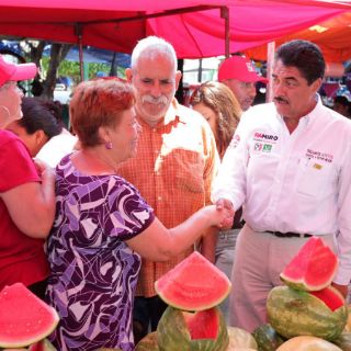 "Es muy importante atender el tema de la higiene en los tianguis, así como atender el problema de la basura una vez que se levantan los locatarios, pero también es fundamental buscar las mejores condiciones para el establecimiento de estas personas que todos los días se levantan a las tres o cuatro de la mañana para venirse a trabajar, con la esperanza de tener un buen día, sin importar las inclemencias del tiempo", precisó el candidato.