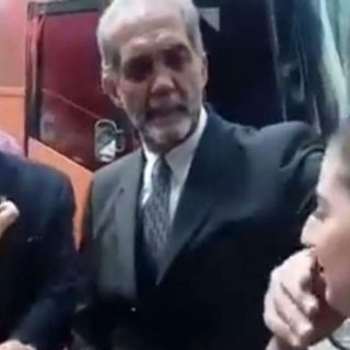 Juan Dabdoub, del Consejo Mexicano de la Familia, tapa la boca de la mujer que lo cuestiona sobre el matrimonio homosexual
