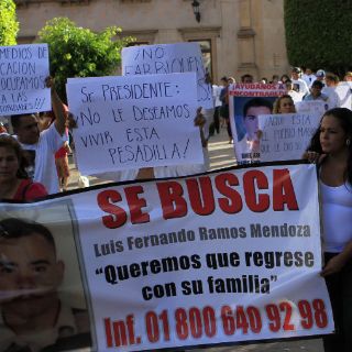 "Vivo se lo llevaron, vivo lo queremos", señalaba otra pancarta. Los muchachos desaparecidos son Ángel de Jesús Rodríguez Hernández, de 19 años; Eduardo Ramírez Hernández, de 21 años; Daniel Armando Espinoza Hernández, de 22 años; José Gerardo Aguilar Martínez, de 18 años; Marco Antonio Ramírez Cárdenas, de 19 años; y Christian Ávila Cardona, de 18 años. El sábado 6 de julio salieron a reuniones con amigos y no los volvieron a ver.