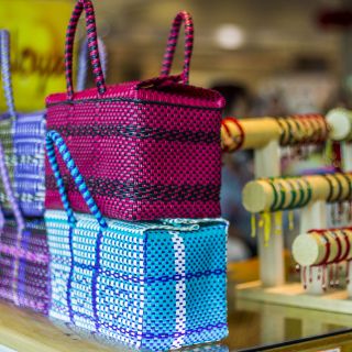 En G Rey Noya se venden pulseras, collares, exhibidores de madera, fajos piteados con hilo de plata y bolsas tejidas a mano. Gerardo tiene 13 empleados que hacen los productos desde la cárcel. Por cada bolsa que hacen, Gerardo les paga 40 pesos. Y en un día cada uno puede hacer tres.