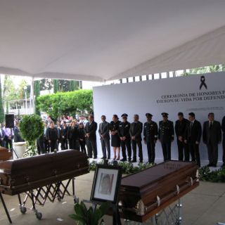 Los féretros de los tres policías fueron colocados al centro del patio y detrás de ellos ingresaron las autoridades, entre ellos el gobernador, Aristóteles Sandoval; y el secretario de Gobierno, Arturo Zamora. Los familiares delante de ellos lloraban la pérdida.