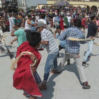 La costumbre implica golpearse con mecates de ixtle con el fin de limpiarse un poco del pecado por la crucifixión de Jesús