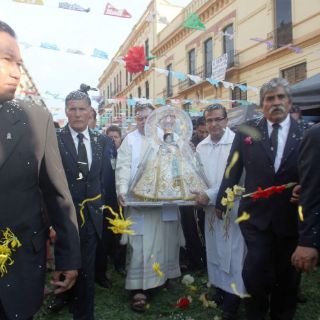 Fieles acuden a la explanada del mercado para llevar a la virgen a la parroquia del barrio
