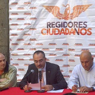 GUADALAJARA, JALISCO (05/DIC/2012).- Tuvieron que competir contra el ruido que venía de afuera del Ayuntamiento de Guadalajara, hecho por dos manifestaciones. De cualquier manera, los regidores de Movimiento Ciudadano dieron su postura sobre la seguridad en el Estado en el patio central del recinto.