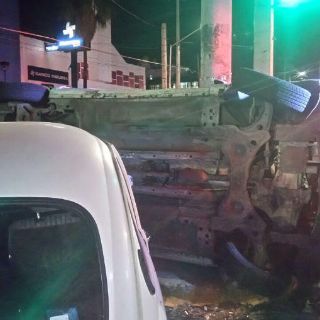 GUADALAJARA, JALISCO (14/SEP/2017).- Un coche volcó sobre su costado e impactó contra un poste en la Avenida Circunvalación cerca de la medianoche del miércoles, luego de haber chocado contra otro vehículo.