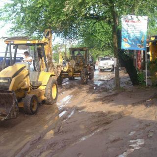 Un grupo de maquinaria y casi una centena de hombres con herramientas manuales y mecánicas trabajaron intensamente durante la tarde de este lunes, actividades que se vieron retrasadas por la presencia de más lluvias que humedecieron el terreno, registrándose nuevos deslizamientos de tierra y vegetación.
