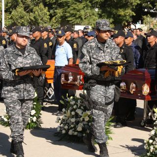 GUADALAJARA, JALISCO (29/OCT/2010).- Esta mañana los nueve policías que fueron abatidos en la emboscada del jueves en Jilotlán de Dolores, fueron despedidos con un Homenaje Póstumo en compañía de sus familiares, compañeros de corporación y autoridades estatales.