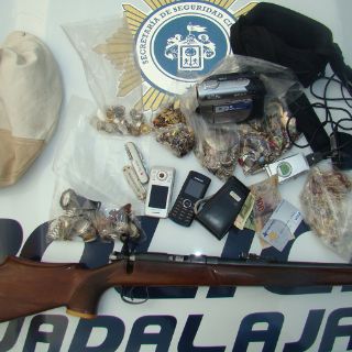 Junto con el botín se encontró un arma de fuego calibre .22, tipo rifle largo, con un cargador.