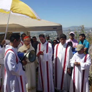 En la cima del Cerro del Tesoro y ante unos 500 participantes en el Viacrucis, el arzobispo tapatío, resaltó que la muerte y la pasión de Jesucristo implican un llamado permanente a una civilización de la paz.