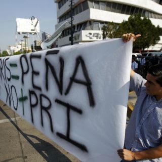 "Alfaro te aliaste con Televisa. No a la manipulación"."Aris igual a Peña. No represión".No se presentan incidentes hasta el momento.