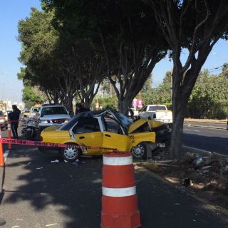 El taxi se impactó contra un árbol del camellón dejando como saldo dos lesionados, un hombre y una mujer, que fueron trasladados en estado regular a las instalaciones de la Cruz Verde Norte, informó la corporación.