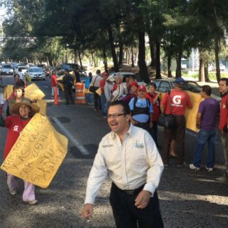 GUADALAJARA, JALISCO (14/MAY/2012).- Trabajadores inconformes del Bosque Los Colomos, al no recibir respuesta del director del Patronato del Bosque Los Colomos, Ricardo Agapito Jara Arce, ante las propuestas de: seguro de vida, homologación de salarios con el Ayuntamiento de Guadalajara, entre otras, decidieron salir del bosque para bloquear dos carriles de avenida Patria, a la altura de Eva Briseño, donde los 50 inconformes muestran pancartas con sus peticiones.