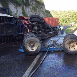 Personal de rescate acudió al lugar donde se hallaba un tráiler volcado, el cual se había incendiado. Los bomberos procedieron a sofocar el incendio.