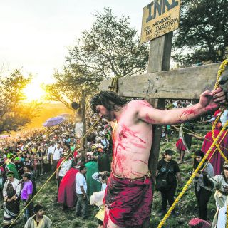 GUADALAJARA, JALISCO (04/ABR/2015).- Miguel Iván Alejo Guareño se preparó física, mental y espiritualmente para representar a Jesucristo en La Judea en Vivo de San Martín de las Flores, un personaje que fue representado por Boni Ernesto Haro en 19 de los últimos 20 años. Por eso este Viernes Santo fue de estreno en la comunidad localizada al sureste de Tlaquepaque.