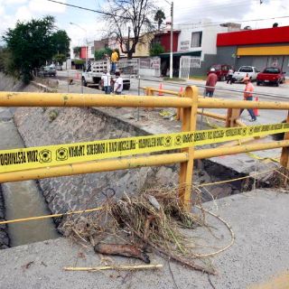 El canal de Patria y Enrique Díaz de León se desbordó al alcanzar un nivel de un metro aproximadamente, lo que ocasionó que la vialidad quedara cubierta de arena, misma que al secarse se levantó con el viento formando una nube de polvo muy molesta para los automovilistas.