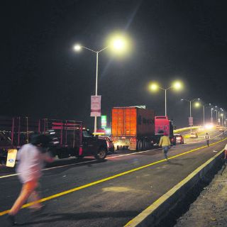 Al pasar por debajo del nuevo puente, por Juan de la Barrera y Periférico, la vía está en completa obscuridad; sólo se observa la luz de los semáforos.