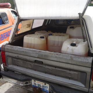 GUADALAJARA, JALISCO (25/NOV/2014).- Tres sujetos que circulaban por las calles de la colonia Loma Bonita Ejidal, en Tlaquepaque, en una camioneta cargada con bidones con gasolina y cientos de kilogramos de juegos pirotécnicos fueron detenidos por la Policía Municipal.